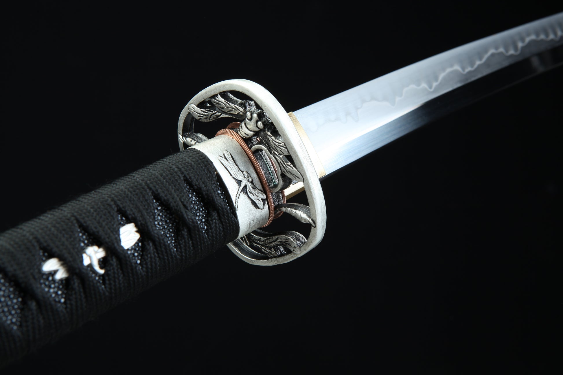The Akitsu 秋津 Black Katana from Moonswords is a refined blend of tradition, balance, and artistry. Its name, Akitsu, meaning “dragonfly,” is a classic symbol in Japanese culture representing courage, strength, and victory.