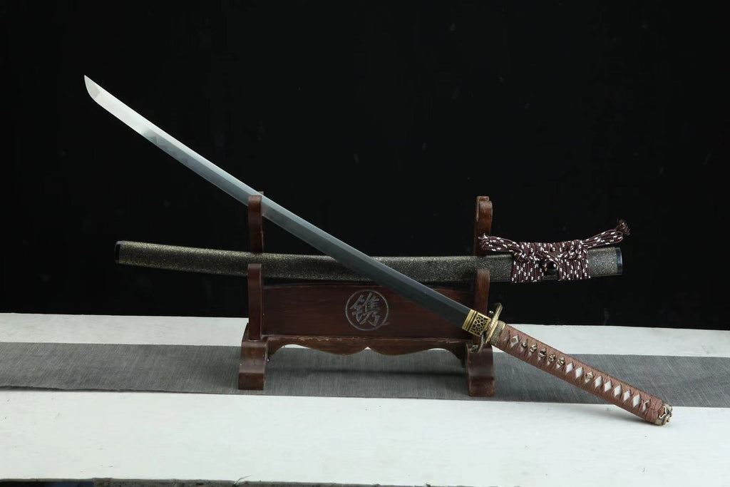 PRODUCT DESCRIPTION – Moonsword-Samurai Katana Sword, Japanese Handmade, Practical, Damascus/1060/1095 Carbon Steel, Tempered/Clay Tempered, Full Tang, Sharp, ScabbardPERFORMANCE – I must admit I was not expecting what was delivered after I selected it, for review. I have a background with these swords, 17 years to be exact. I opened the box and uncovered a beautiful sword, authentically made, it is a pleasure to just admire the craftsmanship. The craft of sword making is a truly amazing process. The good folks at MOONSWORD, have outdone themselves with this stunning Japanese made replica. The sword is not a junk flea market toy that is 90 percent plastic. This not a toy but a real Japanese made replica! I feel I need to stress this is a real authentically made Japanese Kanto style sword, and with a resounding warning, this is a modern made sword, marrying the ancient with the modern. IT IS A REAL SWORD AND YES IT IS RAZOR SHARP! This a beautifully designed and constructed Kanto sword of modern construction but the art of the past has been in preserved in selection of materials and method of construction. The selection of the types of metal tells the tale in volumes, that the MOONSWORD Katana replica can stand proud when compared with swords of the same design but several hundred-years prior construction. The attention given to the construction of an authentic sword but utilizing far purer metals, making a stronger sword yet with the flexibility due to the softer metal cord. In my strong view, if a 16th century, Japanese sword master examined this sword they would be impressed. The blade with the Damascus etching, 1960 and 1095 high carbon steel believe it or not the blade is made of far superior materials and construction than the originals.This product is for a specific market and because I truly cherish all life, I make the following recommendations. This is not a practice sword, it is the “real thing” and you can cut off a limb with little effort, be it your own or others. If you really want to know how to use that replica, then get yourself a qualified instructor. The second danger is the old timers like myself, we use to make a sword sing when we demonstrated our honed skills. I know this is going to hurt, but two decades slipped away and we are no longer that dedicated daily training martial artist. It is very tempting to pull this beautiful replica out of the sheath. Practice or play, with these replicas you will be cut and it will not be a paper cut! Treat it with great respect. I recommend for most to treat as an art piece and buy a stand. I highly recommend great quality and it is beautiful and so is the price! Protect the kiddos by keeping it out of reach and perhaps out of sight.UNBIASED - Amazon Vine reviewers are not paid for reviews, be it positive or negative. I will never recommend a product I would not buy myself. I treat ALL vendors with respect and fairness but my duty is to You, the Amazon customer. I am an Amazon customer too. I have every reason to be sincere in my reviews. If it is junk or treasure my reviews will reflect the products, I give my word of honor. I don’t want any reviews of mine to read like an ad but anyone who has written reviews knows, it is hard to not get sucked into writing in that style, if it is a great product and most are, then we are so enthused about the products and want to scream it to everyone, “Hey, this is a great product”. So in my view, that is why some reviews may sound like ads. I want to say, I encourage you as an interested customer, to ask me questions about the product and I will do my very best to answer each and every one of you. Amazon reviewers can write our views anyway we feel about any product; all we wish to do is help.A reviewer on a social platform often states, “He does not trust Amazon Reviews”. The gentleman is a great reviewer and makes very high quality content, however in this case I disagree strongly. Amazon reviews are dependable and useful. However, use common sense the lower the number of reviews the less accurate the score is. Products that are “Amazon Choice” have always been a winning selection for me. The Amazon review scoring system, lets you know what customers and reviewers like and dislike about the product you are considering purchasing.I cannot state this enough but Amazon Vine reviewers have no reason or encouragement to favor or disfavor any product. Reviews are not edited by Amazon, unless they violate community policy, for example profanity etc., Amazon does not edit reviewers. The comment about Amazon reviews being questionable is somewhat debatable. I assume the comment made by the non-Amazon reviewer is referring to Amazon Vine reviews. I can’t speak for no one but myself, but if the day would ever come that I thought I was obligated to writing ads, I would move on. Amazon knows the value of customer satisfaction and wants to weed out any products that do not live up to advertising claims. Again if you h...