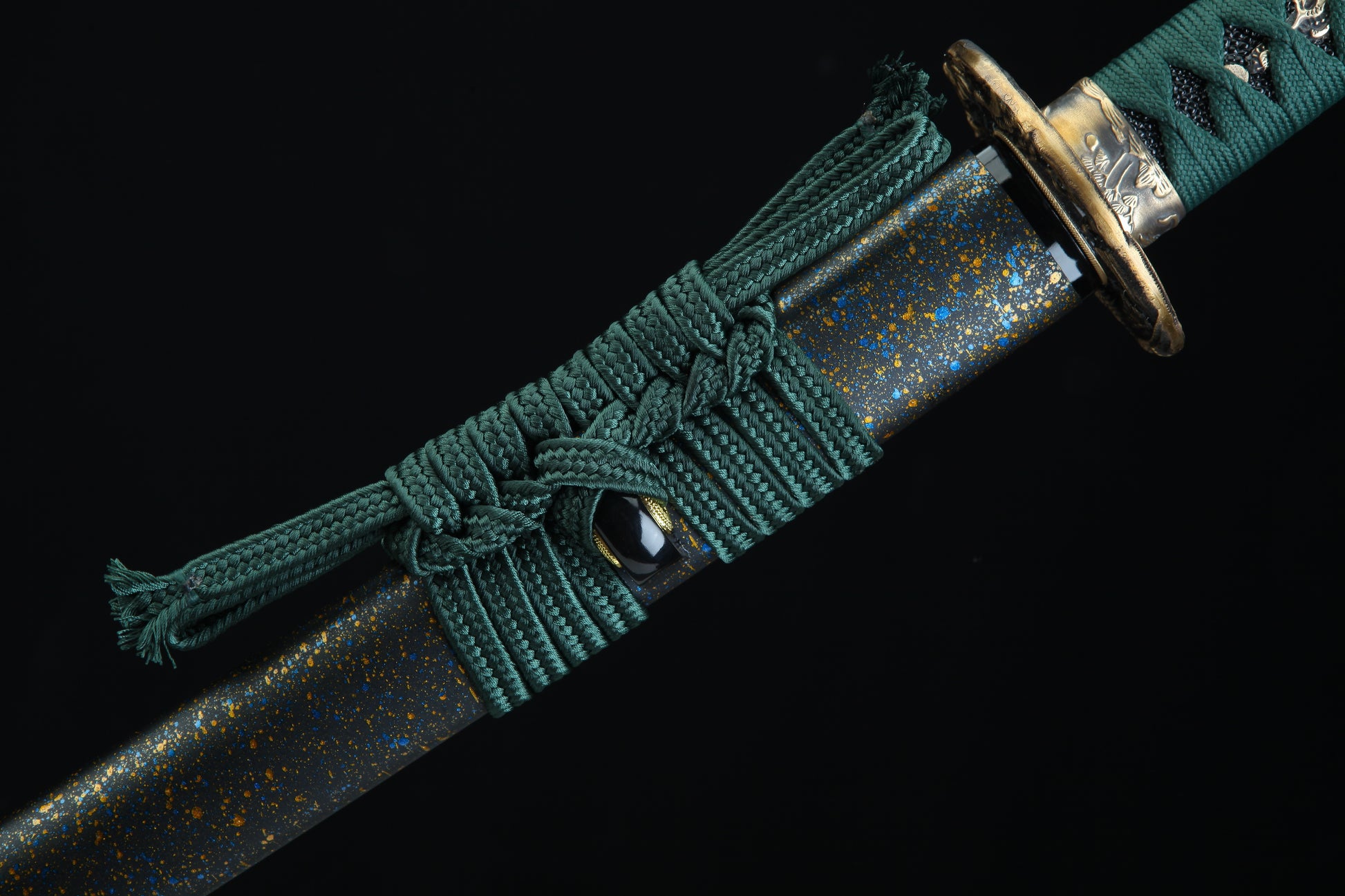 - Olive Green and Gold Saya (Scabbard): Solid wood construction with elegant color coordination